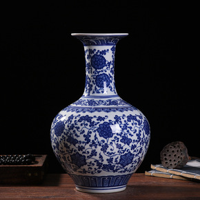 景德镇陶瓷花瓶 中式青花瓷器仿古客厅家用插花花瓶 ...