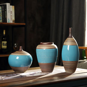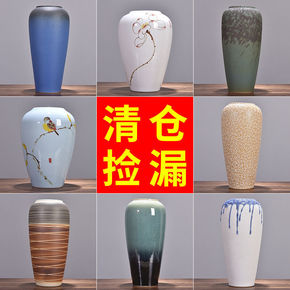 景德镇陶瓷水培小花插花器花瓶复古陶罐粗陶客厅干花家...