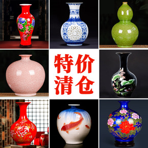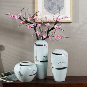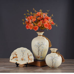 景德镇复古桌面陶瓷花瓶客厅玄关瓶子花盆装饰品插干花...