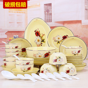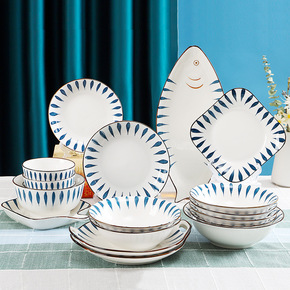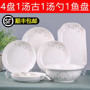 盘子碗套装4菜盘1汤古1汤勺1蒸鱼盘子个性陶瓷碟组...