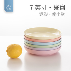 北欧创意彩色盘子碟子深盘家用餐具圆形日式陶瓷装菜盘...