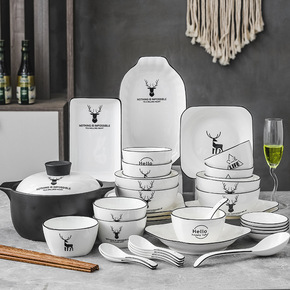 陶瓷餐具套装碗家用日式创意2021新款碗盘勺筷组合...