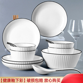 陶瓷餐具套装盘子组合家用深菜碟汤盘日式创意4/6头...