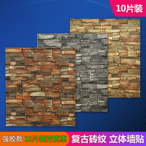 自粘3D立体复古砖墙贴店铺背景墙面翻新防水防潮工业...