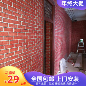 新中式砖块复古砖纹红砖黑砖仿古自粘墙布砖头工业风墙...
