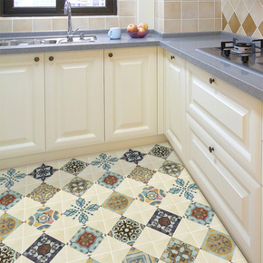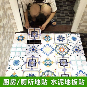 厨房地面防水防滑耐磨地贴花砖贴纸装饰复古自粘墙贴阳...