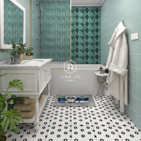 北欧复古黑白花砖卫生间瓷砖浴室厕所墙砖阳台艺术拼花...