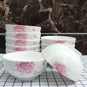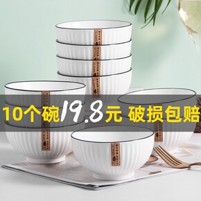 10个装景德镇家用米饭碗陶瓷碗单个吃饭碗可爱餐具套...