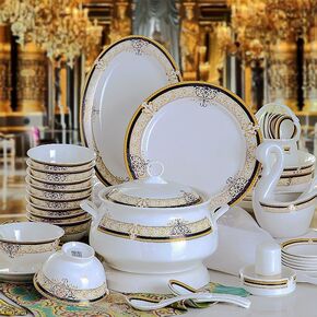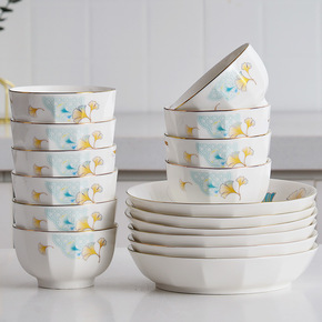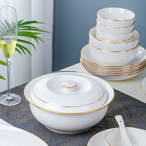 盘子碗批发大量批发碗套装家庭组合轻奢金边碗碟套装陶...