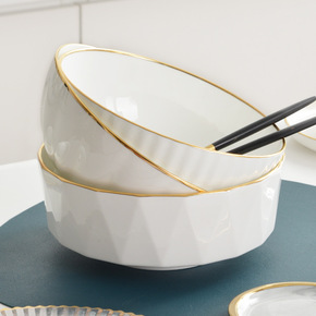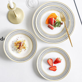 轻奢餐具白金套装北欧风陶瓷吃饭家用牛排日用百货碗合...