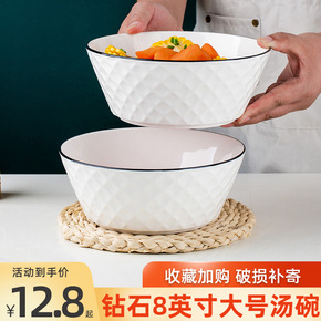 家用8英寸大号陶瓷汤碗个性单个饭碗简约面碗加厚加大...
