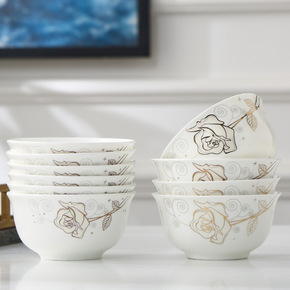 米饭碗家用金边10个套装骨瓷饭碗景德镇中式瓷碗不烫...