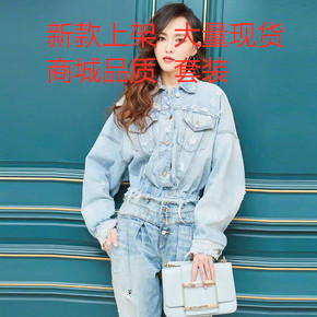 2020唐嫣同款牛仔外套女套装破洞裤子连体裤宽松衣...