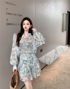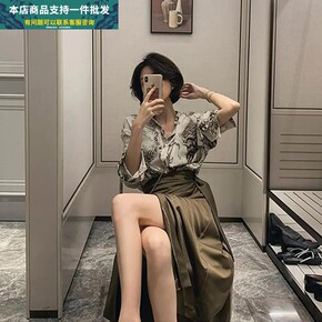 2022早春新款法式仙气V领防晒碎花衬衣+高腰半身...