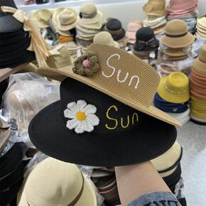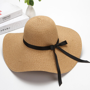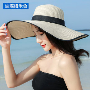 2022帽子女夏季新款海滩遮阳帽可折叠沙滩帽蝴蝶结...