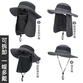 户外春夏防晒帽防紫外线透气大沿遮阳防护渔夫帽登山骑...