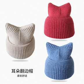秋冬新款帽子女 羊绒针织帽户外保暖套头帽韩版百搭羊...