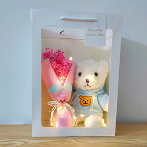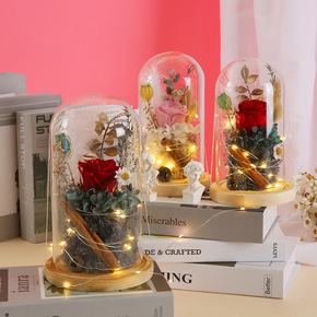 花玫瑰满天星干花束成品带灯圣诞生日礼物送男女友闺蜜...