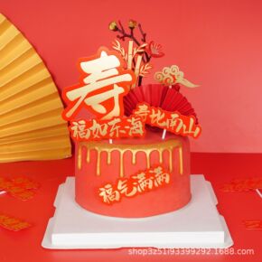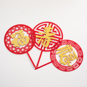 新款福字寿字双层亚克力生日快乐蛋糕插牌 烘焙甜品立...