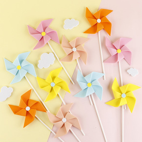 厂家直销蛋糕装饰创意儿童海绵立体彩色风车插件情景生...