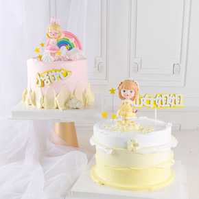 彩虹云朵蛋糕装饰彩印生日快乐蛋糕装饰插件独角兽蛋糕...