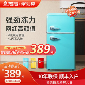 志高118升复古冰箱小型美式怀旧网红家用双开门冷藏...