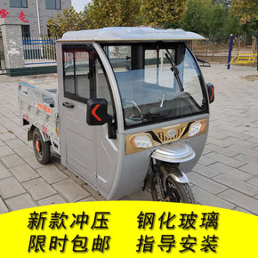 电三轮车棚全封闭驾驶室加厚铁皮钢化玻璃摩托车棚雨棚...