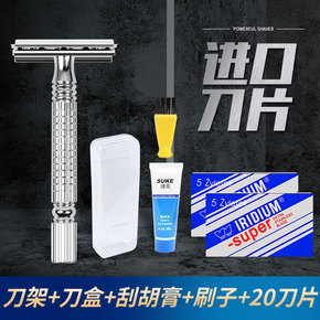 老式不锈钢双面刀片刀架剃须刀手动刮胡刀剃头发修眉刮...