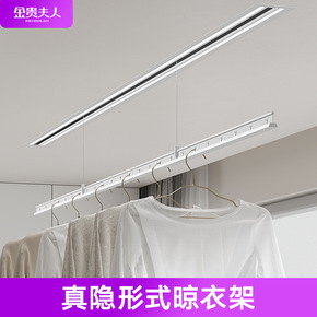 单杆电动晾衣架小户型隐形阳台遥控升降侧装伸缩家用凉...