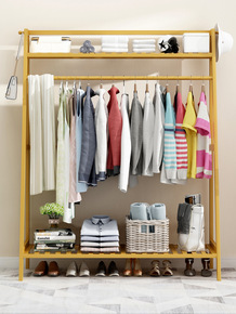 家用衣帽架卧室实木衣服收纳架房间门口置物架简易挂衣...