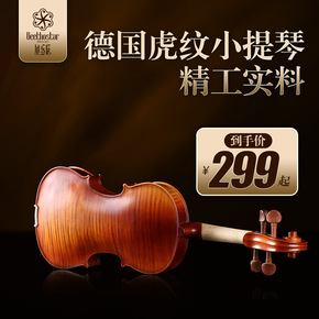 虎纹实木小提琴儿童成人初学者学生练习演奏全手工专业...