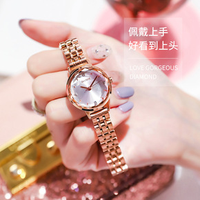 时刻美新款时尚手链式百搭女士石英表 网红小绿表玫瑰...