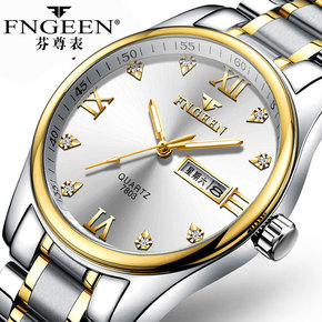 FNGEEN手表间金钢带时尚男士手表双日历石英表休...