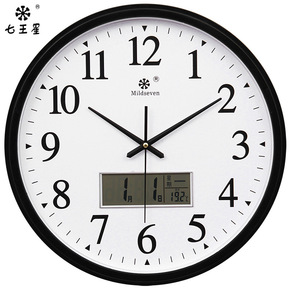 钟表客厅日历大挂圆形创意钟挂表静音电子石英钟家用工...