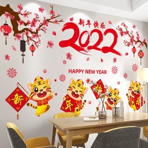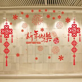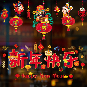 新品2022春节元旦新年装饰贴纸店铺橱窗贴客厅窗户...
