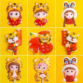 新年蛋糕装饰摆件插件老虎年动物烘焙场景装扮元旦生日...