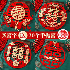 结婚喜字门贴窗贴植绒布婚房婚礼喜字贴纸装饰结婚庆用...