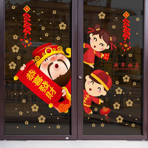 新年元旦装饰品餐厅卧室门窗防撞玻璃贴纸春节喜庆福字...