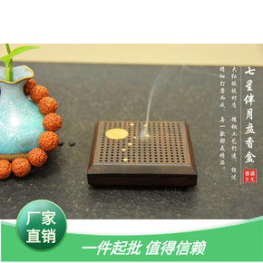七星酸枝盘香嵌铜大红伴月红木线香篆香炉香具香盒香道...
