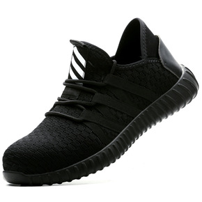 飞织舒适耐磨工作防滑劳保鞋男 防砸透气防刺防护鞋厂...