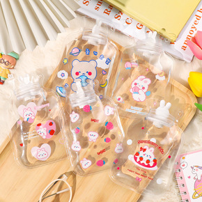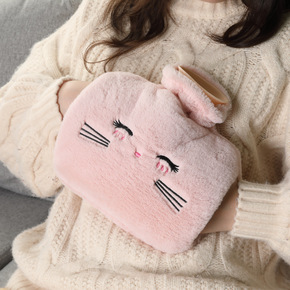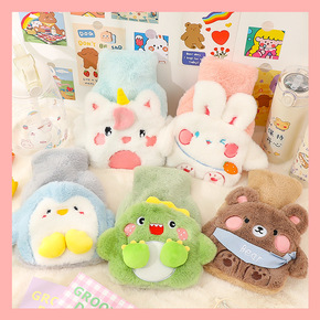 韩国ins风新款暖水袋 简约可爱卡通动物女孩图案毛...