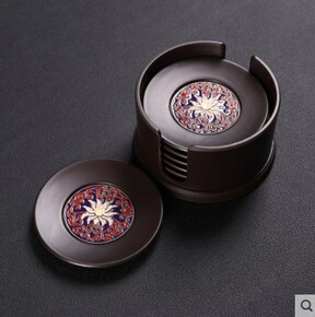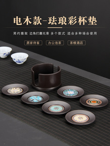 电木杯垫中式复古茶杯托套组珐琅彩茶杯垫家用茶杯隔热...