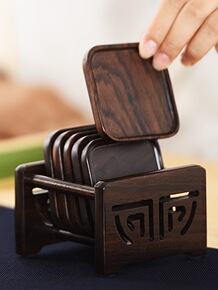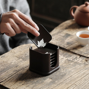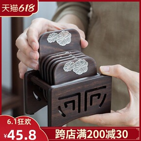 黑檀实木茶垫杯垫日式复古禅意茶杯垫茶道功夫茶杯托隔...
