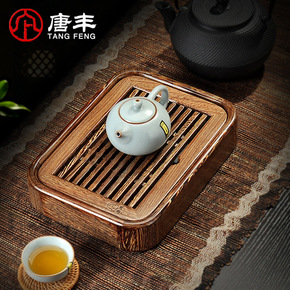 科技木茶盘实木家用整块平板排水式茶海功夫茶具茶台托...