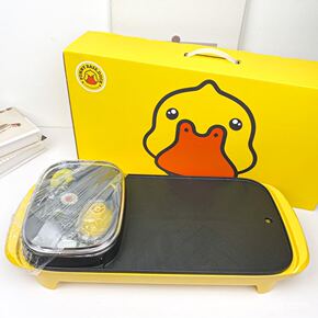 小黄鸭涮烤一体锅 家用烧烤炉多功能烤肉机 麦饭石不...