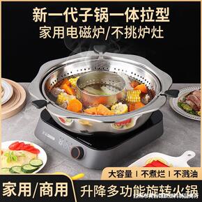 旋转式升降火锅不锈钢火锅盆鸳鸯304子母锅电磁炉家...