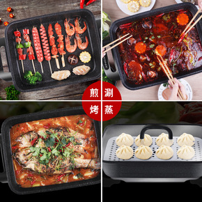 麦饭石长方形电火锅8L大容量家用电热煮锅蒸烤鱼炒菜...