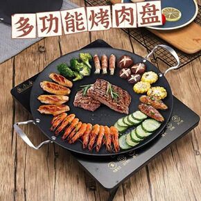 【直营】韩式电磁炉烤盘家用明火烤肉锅圆形铁板烧烤盘...