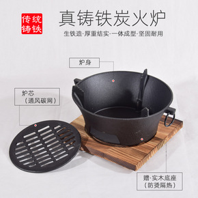 铸铁干锅炉加厚不沾锅木炭炉烤肉碳烧炉生铁日式火锅锅...