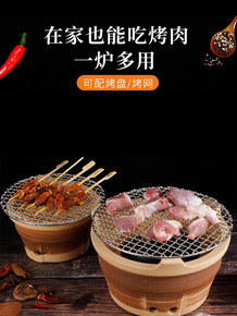 韩式烧烤炉家用户外碳烤炉小型烧烤架商用圆形烤肉锅木...